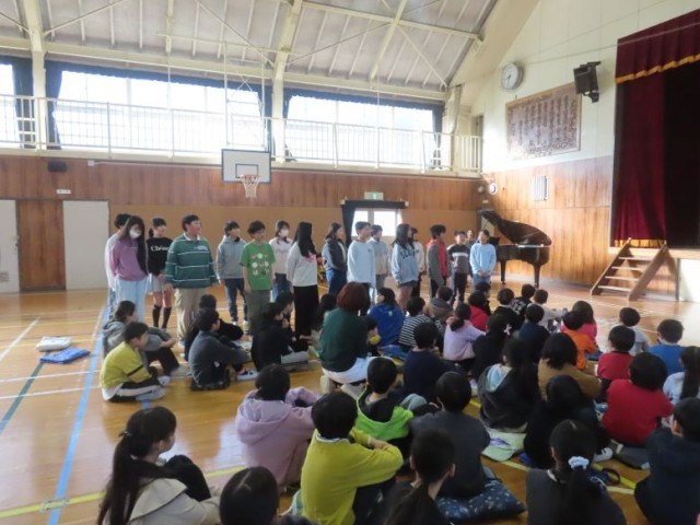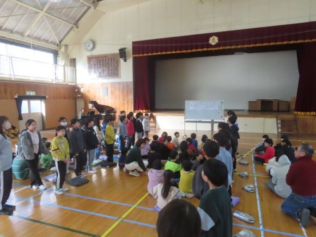 音楽朝会で、6年生を送る会で歌う「ビリーブ」の練習をしました。途中、5年生が歌う下のパートをみんなに聞いてもらったり、2学年ごとに歌声を聞いてもらったりする場面がありました。当日の全校合唱が楽しみですね。