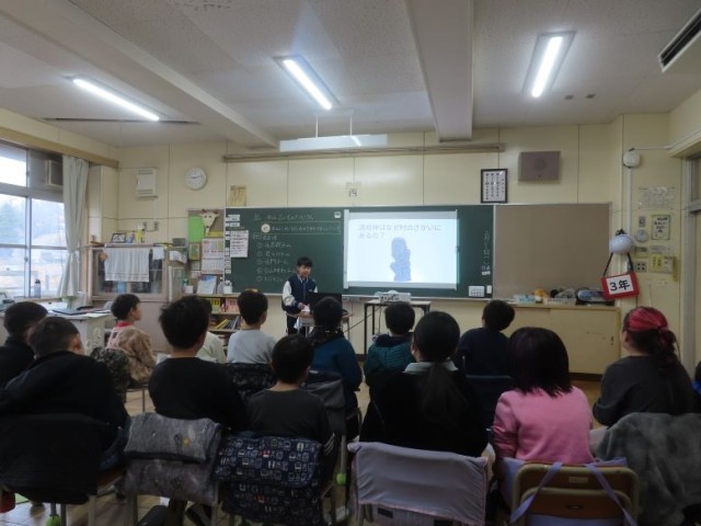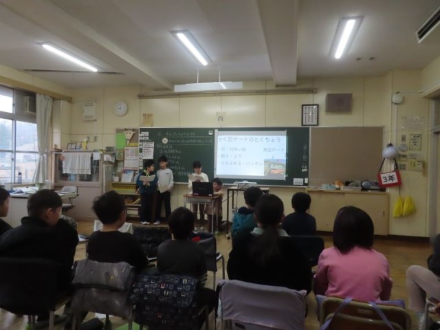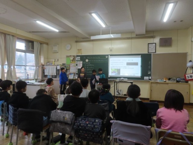3年生が総合的な学習の時間に学習した「中山古いものたんけん」の発表会をしました。永昌院チーム、岩入川チーム、水門チーム、白山神社チーム、おじぞうさん・道祖神チームに分かれ、チームごとに発表しました。今の様子だけでなく、歴史などもよく調べていました。今日は、インタビューにご協力いただいたご家族の方にもお越しいただき、最後に感想も含めてお話しいただきました。ありがとうございました。先生方からは、発表内容、成長したところなどたくさん褒めてもらっていました。とてもよい発表会でした。