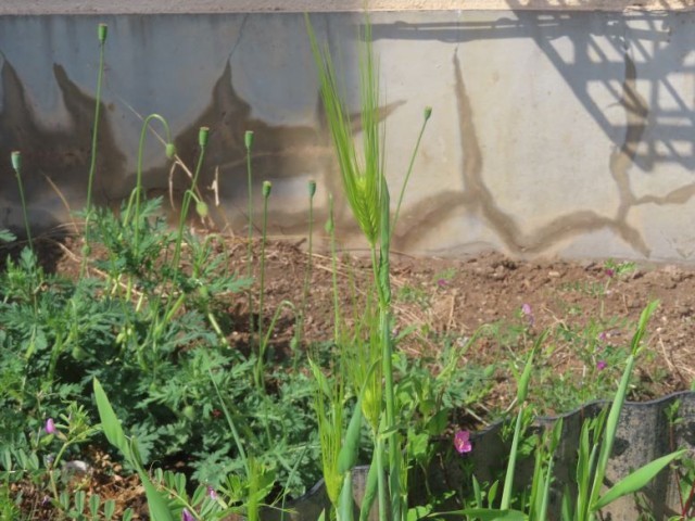 この一週間は気温が高く、大麦がだいぶ伸びました。穂が出ていました!