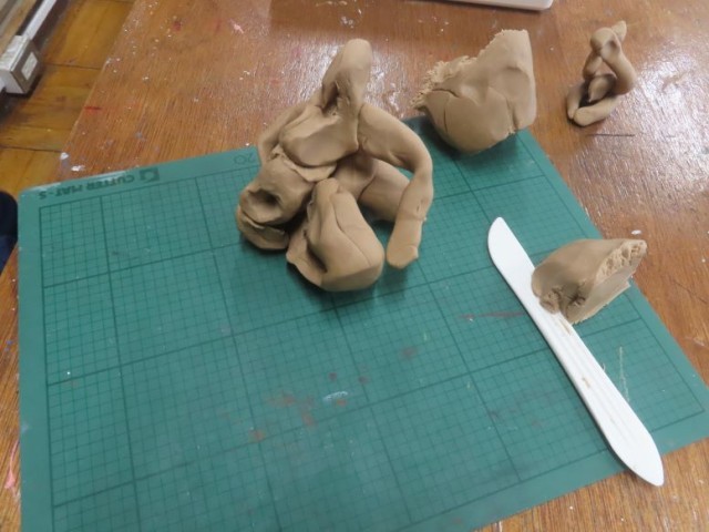 2年生が図画工作「こんにちは むぎゅたん」の学習で、粘土の形を変えて、想像した生きものをつくりました。いろいろな「むぎゅたん」が誕生していました。2年生は生き生きと活動していました。