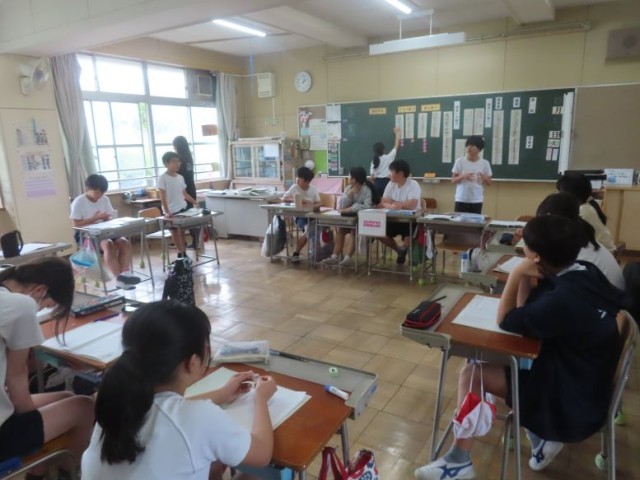 6年生が議題「クラスを盛り上げるための係を決めよう」について話し合っていました。学級会は、基本的には意見を「出し合う」「比べ合う」「まとめる」という段階で進めていきます。写真は、「比べ合う」場面の話し合いの様子です。