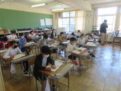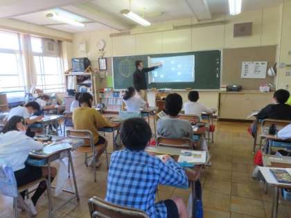 5年生が社会科で「日本の国土と世界の国々」の学習をします。今日は、地球儀の用語や世界の大陸と主な海洋、主な国の名称と位置について学習しました。