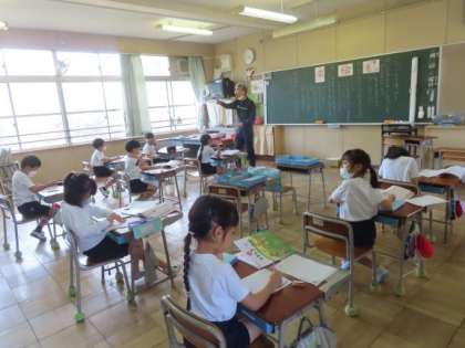 2年生が道徳の学習で、資料名「自分でオッケー」を通して、自分でできることは 自分でやり、 気持ちのよい生活をしようとすることについて考えました。考えたことをワークシートにしっかりと書いていました。