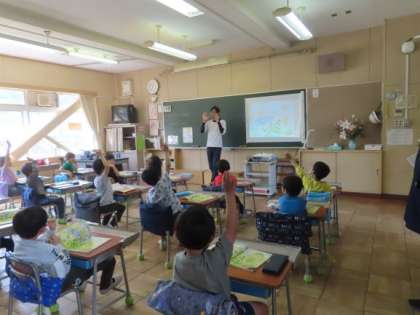 先生の質問が分かったら、指名してもらおうと元気よく手をあげていました。