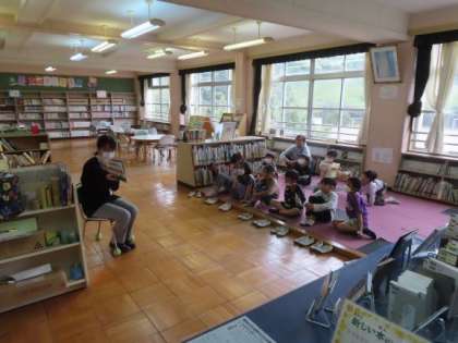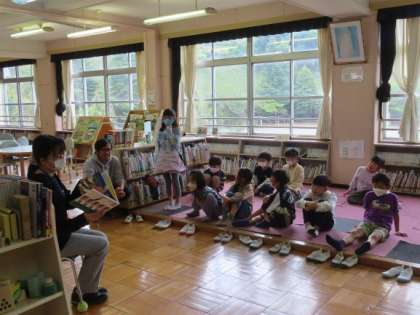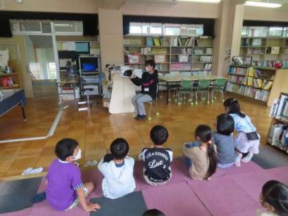 2年生は図書の時間の後半に学校司書さんが読み語りを行っています。読み語りを聞いた後、多くの子どもが手をあげて、感想もしっかりと言うことができました。