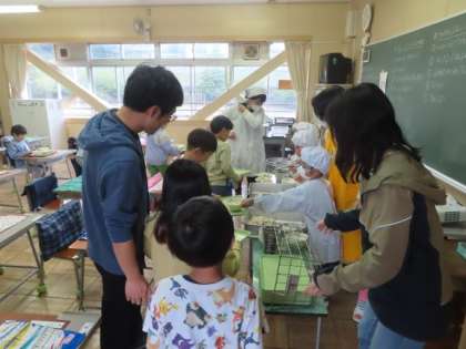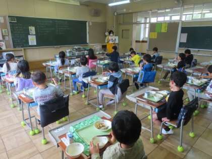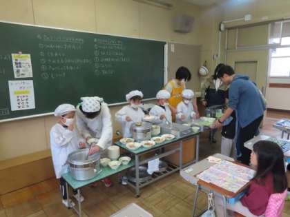 1年生 初めての給食 公開日 2023/04/17 更新日 2023/04/17 1年生 1年生にとって小学校初めての給食の日です。給食の準備の仕方、給食当番の仕事など、複数の教職員が丁寧に指導しました。食べ始めたら、栄養士がイラストを見せながら給食のルールやマナーを説明しました。 食べ終わると、牛乳パックの片付け方の動画や先生の説明を聞き、片付けをしました。覚えることがたくさんあります。 いいね(0)