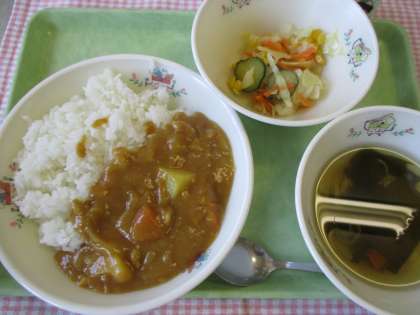 カレーだけ、ごはんだけが残らないように上手に配膳、おかわりしてください。