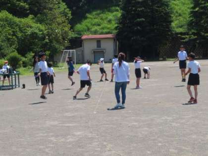 今週はなわとび週間です。中休みに一人一人がなわとびカードにある跳び方に挑戦しています。先生は跳び方を見たり、回数を数えたりしています。中山小学校の子どもはなわとびが上手になります。