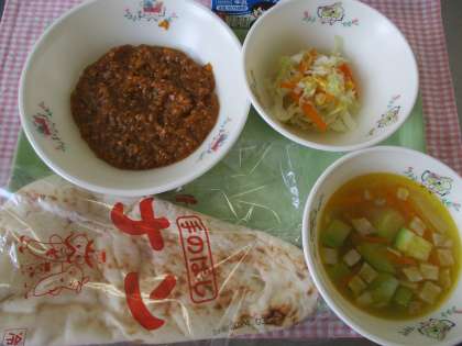 コンソメスープには、中山小の2年生が、近所の農家さんからいただいたズッキーニが入っています。ありがとうございました。
