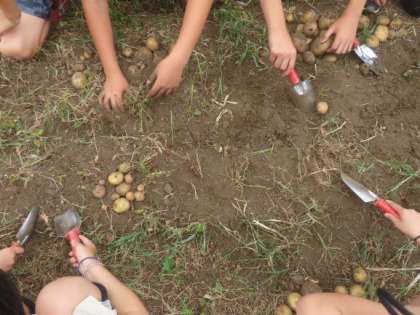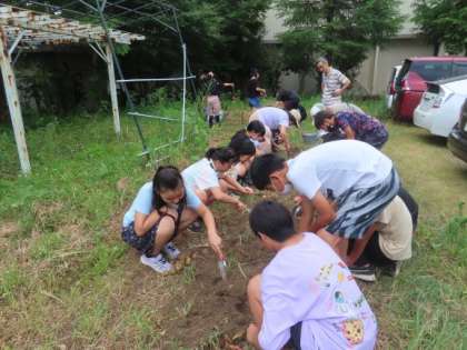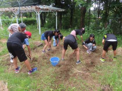 6年生が理科の学習で育てていたジャガイモの収穫をしました。たくさん収穫することができました。