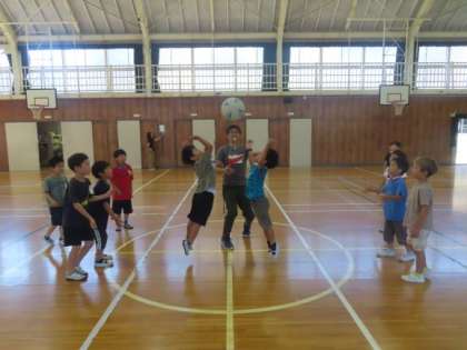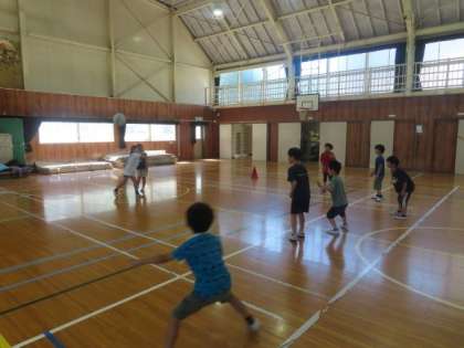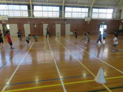 1年生は体育館でお楽しみ会をしていました。遊び方のルールを自分たちで決めて、楽しんでいました。