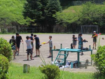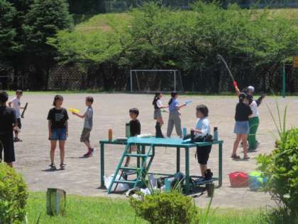 6年生は校庭でドッジボール等をしてから、水遊びをして楽しみました。