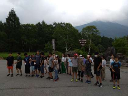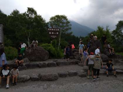 男体山をバックに集合写真。天気は曇り。気温25℃。