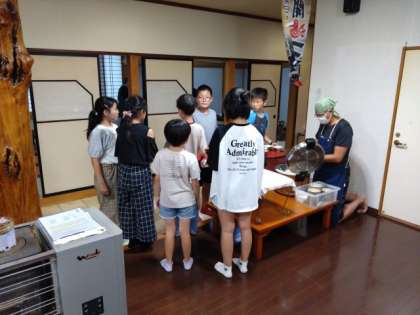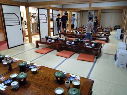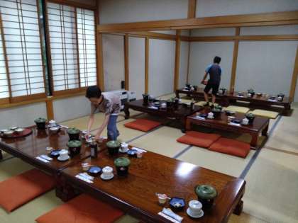 ご飯とお茶の準備をしています。力を合わせて頑張っています。