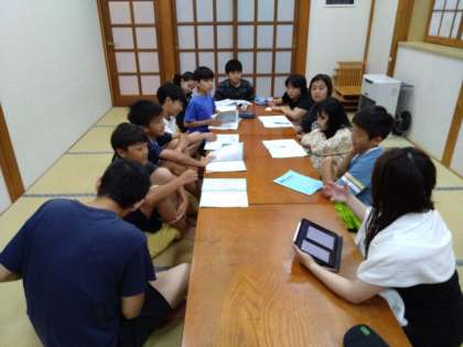 今日のこれからのこと、明日のことについて確認しています。反省を生かして、明日は今日以上に頑張ろうとしている頼もしい班長さん、室長さんです。