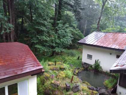 宿舎に向かっている途中からかなり強い雨が降っています。夜の予定は室内に変更になりそうです。