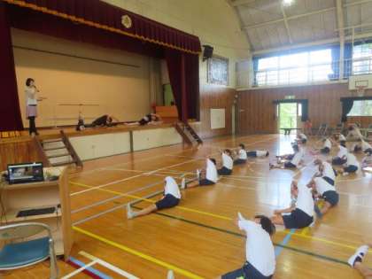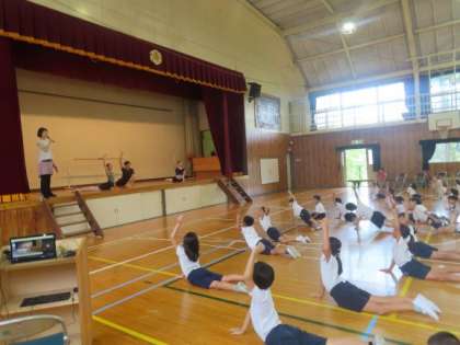東京シティ・バレエ団の方がワークショップをしてくださいました。ストレッチから体験しました。