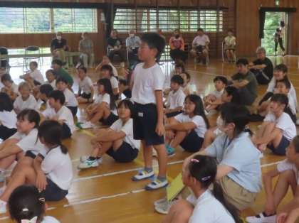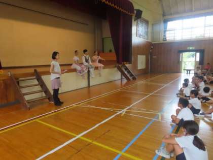 バレエ ワークショップその4 公開日 2023/09/07 更新日 2023/09/07 学校のようす 最後の質問コーナーでは、子どもたちの質問に丁寧に答えてくださいました。代表児童からお礼の言葉を述べ、ワークショップが終了しました。10月31日に本公演を予定しています。子どもたちは今回のワークショップを体験し、本公演が楽しみになったことでしょう。 東京シティ・バレエ団の皆様、本日は素敵な時間をありがとうございました。 いいね(0)