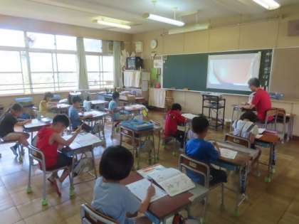 2年生が書写で「画のつき方と交わり方」の学習をしました。画と画がはなれるか、つくか、交わるかに気をつけて書くと、正しい字が書けるようになります。