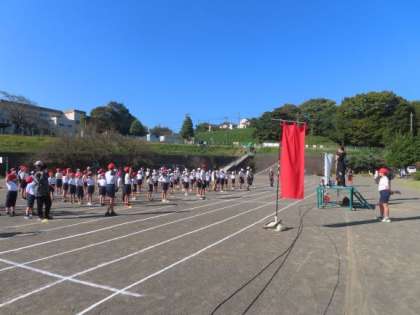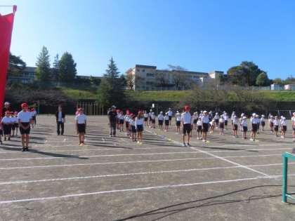 運動会全校練習 入場 公開日 2023/10/12 更新日 2023/10/12 学校のようす 青空の下、運動会の全校練習を校庭で行うことができました。まず、開会式の入場練習をしました。笛の合図にあわせ、行進しました。 いいね(0)