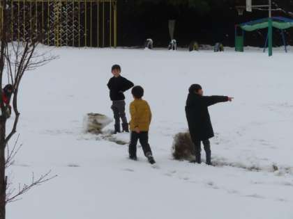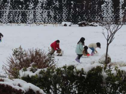 かわいい雪だるまができました。1・2年生は、雪遊びができて満足したことでしょう。