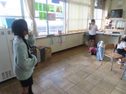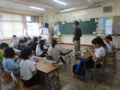 3年生が理科で音の性質について学習しています。今日は、糸電話をつくり会話をしました。