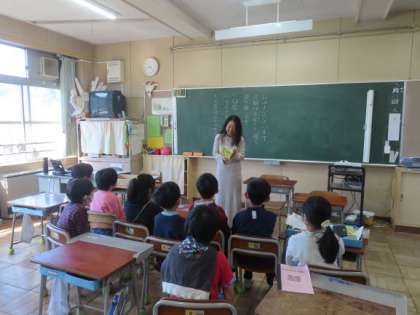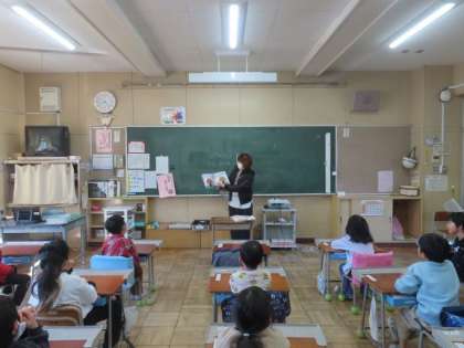 今日は、今年度最後の読み語りでした。写真は、1・2・3年生の読み語りの様子です。