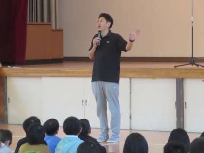 その後、6年生スピーチがありました。6年生が順番に全校児童の前で話をする貴重な機会です。今日は、たてわり班でがんばりたいこと、日光移動教室でよい思い出を作りたいこと、6年生として尊敬されるようにがんばりたいことなどの話がありました。最上級生になった、今の気持ちが伝わってくるよいスピーチでした。