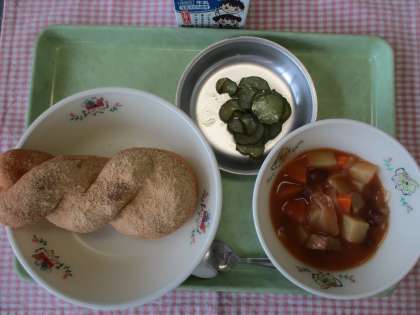 きなこ揚げパンは、パンを素揚げし、きな粉、さとう、塩を合わせたものをまぶします。給食で人気メニューの一つですね。