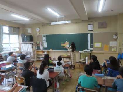 登校した直後の読み語りですが、子どもたちは集中してよく聞いています。図書ボランティアの皆様、蒸し暑い中、今日もありがとうございました。