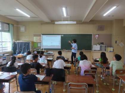 4年生が算数で小数について学習しています。長さや重さなどの量の大きさを、小数を使って表すことを通して1/1000の位までの小数の意味を学習します。小数が十進位取り記数法によって表されることの理解を深めるように指導を工夫しています。