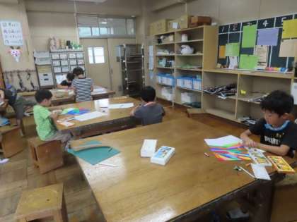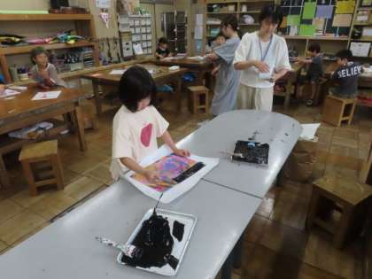 2年生 スクラッチアート 公開日 2024/07/09 更新日 2024/07/09 2年生 2年生が図画工作で画用紙にクレパスで思いのままに色を塗り、その上から黒色のアクリル絵の具で真っ黒にしています。白い部分を残さずにしっかりと塗ることがポイントです。 次の時間にスクラッチします。楽しみですね。 いいね(0)