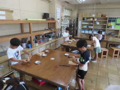 3年生 くぎちゃん 公開日 2024/07/10 更新日 2024/07/10 3年生 トントントントン・・・。 図工室の方から金槌の音が聞こえます。何を作っているのか知りたくなり、図工室に行ってみると、金槌を使って釘を打ち、自分だけのくぎちゃんを楽しそうに作っていました。釘打ちが上手になります。 いいね(0)