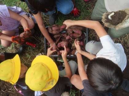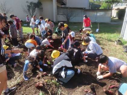 いもほり その2 公開日 2024/10/22 更新日 2024/10/22 学校のようす 葉の育ち具合から、あまり収穫できないのではないかと心配していましたが、たくさん収穫することができました。さつまいもについている土はしっかりと落としました。 いいね(0)
