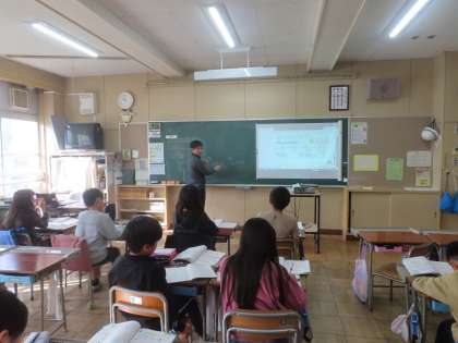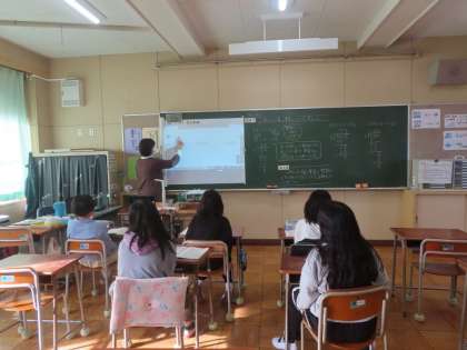 4年生が算数で「小数のかけ算やわり算」の学習をしています。今日は、小数÷整数の筆算の仕方を考えました。今までに学習したことをもとに、筆算の仕方を考えていました。