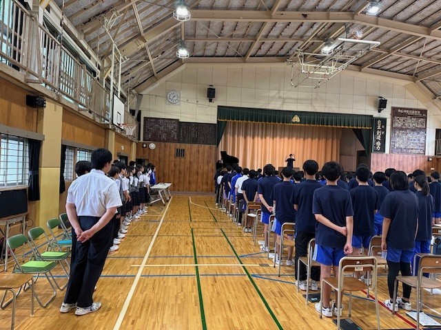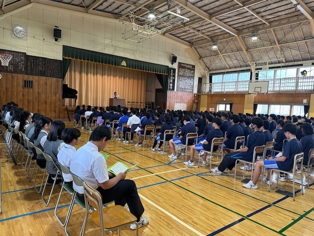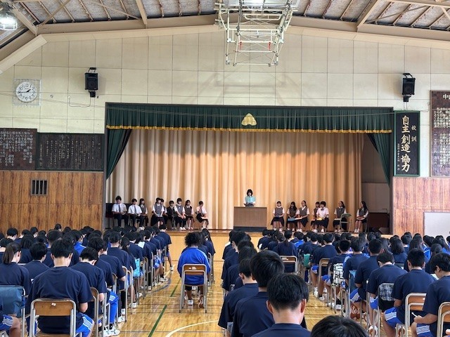 19日(金)5校時、生徒会役員選挙の「立会演説会」が行われました。