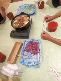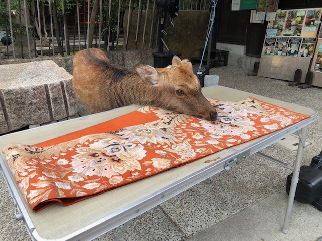 テーブルの敷物の上でゆったり(ぐったり?)している鹿もいました。