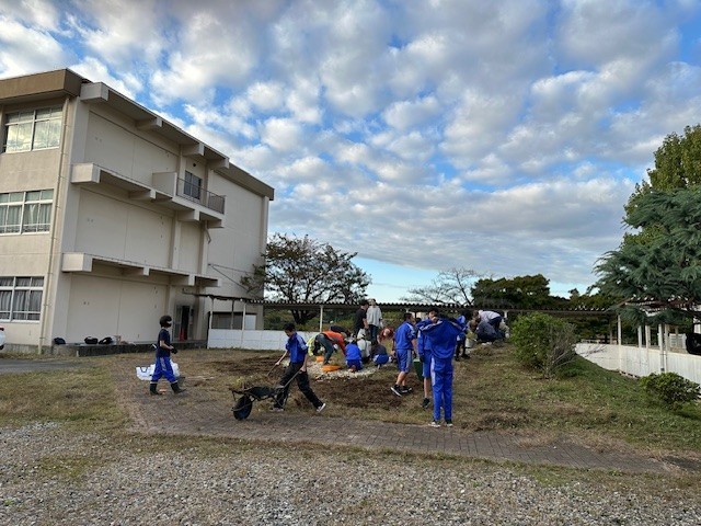 PTA杉の沢会、学運協の方々をはじめ、「中山里山クラブ」に加え、有志の生徒が加わり、中山の文字がはっきり見えるようになりました。