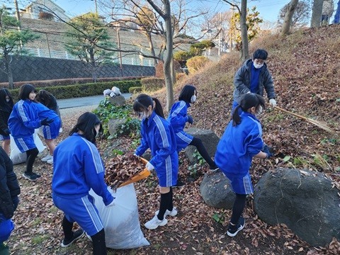 18日(木)3時から生徒会主催の「クリスマス清掃」(落ち葉拾い)が実施されました。