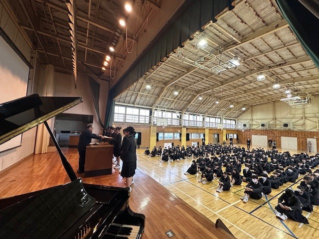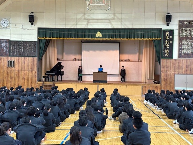 各学年代表生徒が2学期の振返りと、3学期への抱負を述べました。
