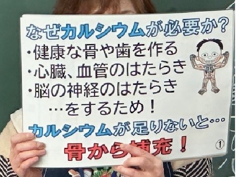 1年生の各教室で「健康な骨の成長」というテーマで、カルシュウムを摂取する大切さについてのお話がありました。
