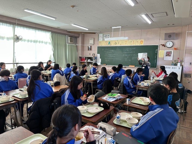 1月30日(金)、給食の時間に、中山小の栄養士さんがいらして、