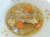 地元のおいしい豆腐屋さんからたくさんの生揚げが納品されました。「のっぺい汁」に使われます。のっぺい汁のだしは「けずりぶし」たくさんの野菜とともに煮込んで作られます。最後にでんぷんでとろみをつけたらできあがり!!心も身体もぽっかぽかになる栄養たっぷりな「のっぺい汁」でした。