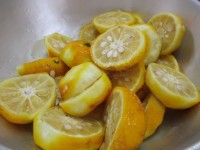 しょうが焼きには豚肉を44キログラム使いました。しょうが焼きに使用する「根しょうが」の半分をみじん切りにして大きな釜のたっぷりなお湯に入れ、さっと湯通しします。