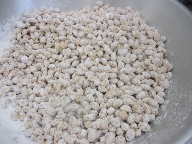 ポップビーンズは大豆を一番おいしく食べることができるメニューではないでしょうか?乾燥大豆をコトコト少々硬めに茹でておきます。水気を切って、片栗粉をまぶし、油でカリッと揚げます。