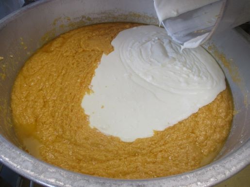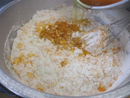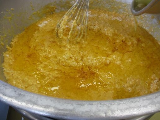 次にサラダ油を加えて混ぜ、続いて無糖ヨーグルトを加えて混ぜます。