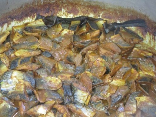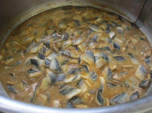 さばは低学年40g、中学年50g、高学年プラス教職員、保護者の皆様60gの3釜に分けて煮ました。コトコト煮ること約3時間。みそ汁のようにサラサラだった煮汁もこってりしたタレになります。