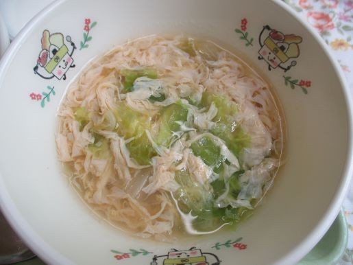 レタスとたまごのスープは、具がレタスとたまごのみ、味つけは「だし汁」にしょうゆと塩のみのシンプルなとろみがついたスープです。レタスはすべて手で小さめにちぎります。ふわっと仕上がった「たまご」が、スープにまろやかさをプラスしてくれます。レタスが余ってしまった。そのようなときはぜひ、試してみてください。