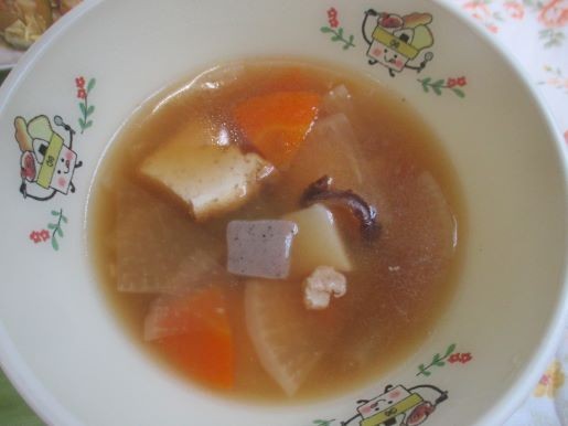 のっぺい汁はしょうゆ味でとろみのついた汁です。この日の「のっぺい汁」もしっかりだしをとり、たっぷりの生揚げ、立派な里芋を使って作りました。心も体もポカポカに温めてくれるおいしい「のっぺい汁」でした。