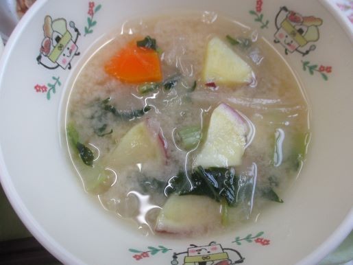 今日は八王子産の「さつまいも」を使った「さつまいものみそ汁」を作りました。4年生の教室の配膳をしてくれていた副校長先生は「この時期のさつまいものみそ汁が大好きなんです」といつものニコニコ笑顔をさらにニコニコ笑顔にして言ってくださいました。
